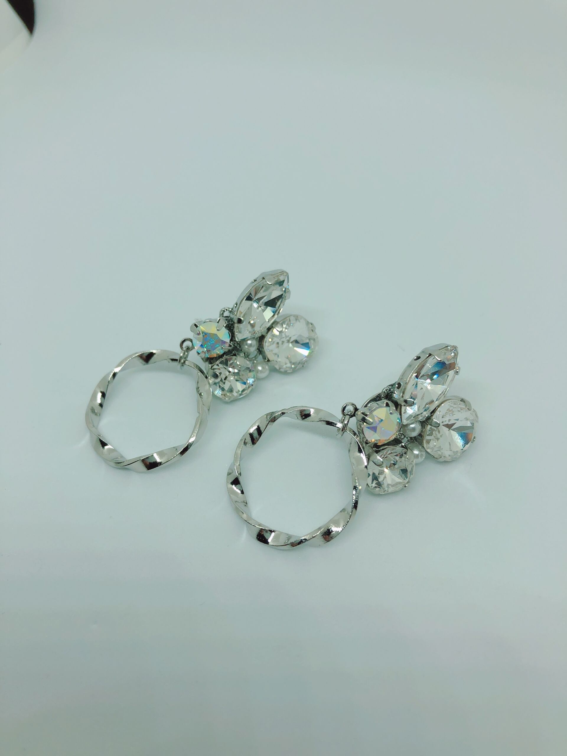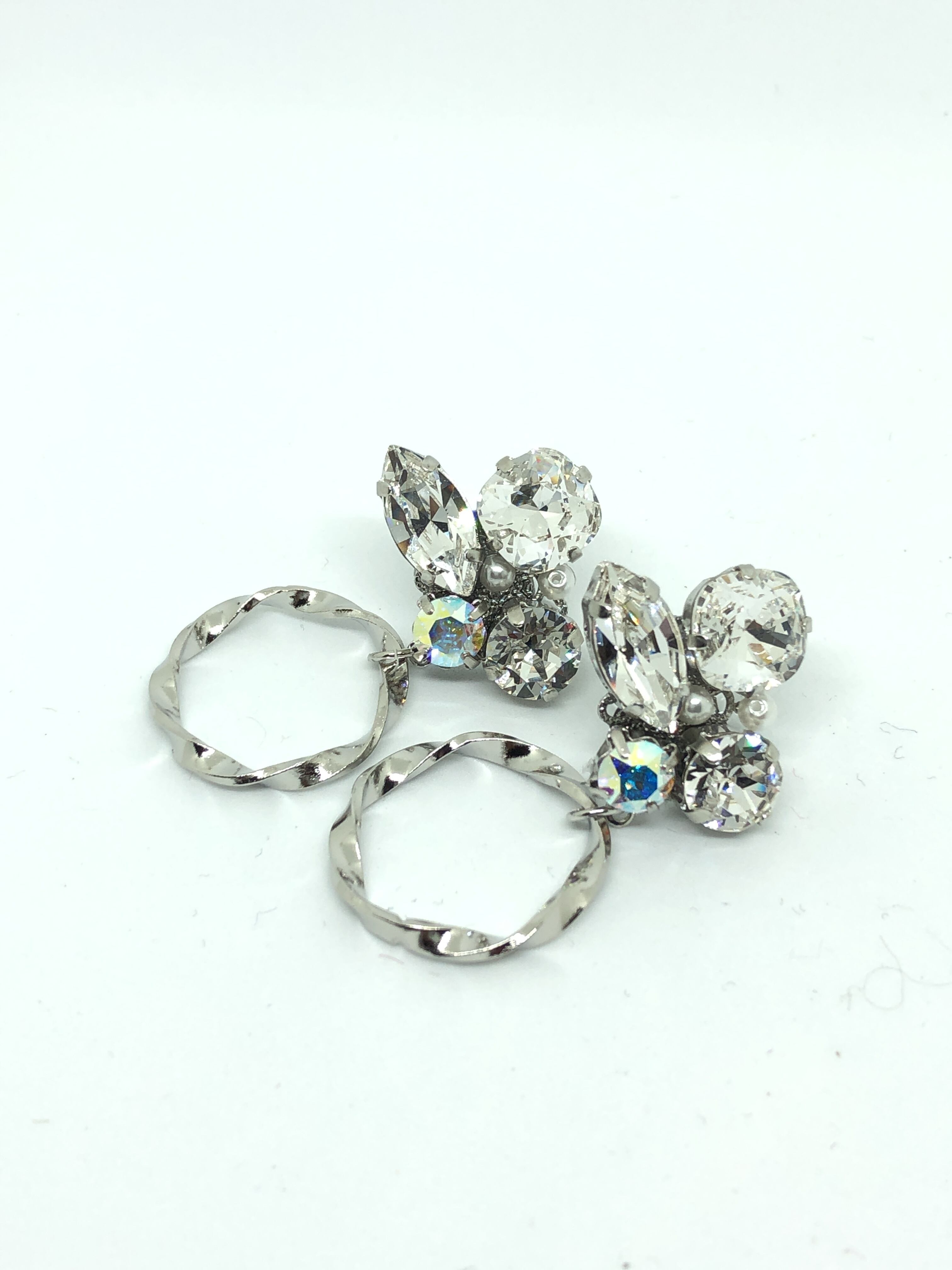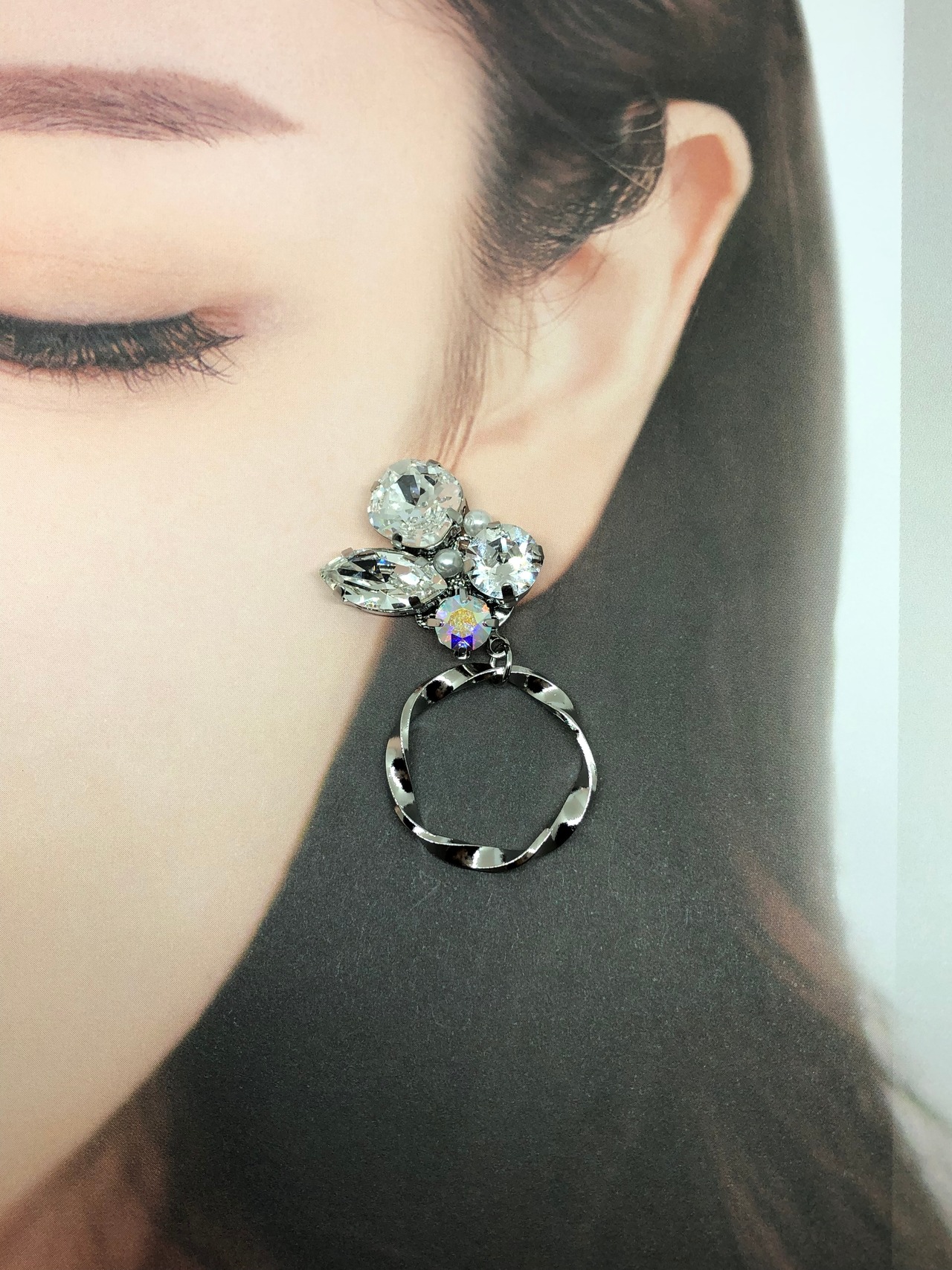 クリアとクリアオーロラの形やサイズ違いのスワロフスキーに隙間に小さなパールを詰めました。