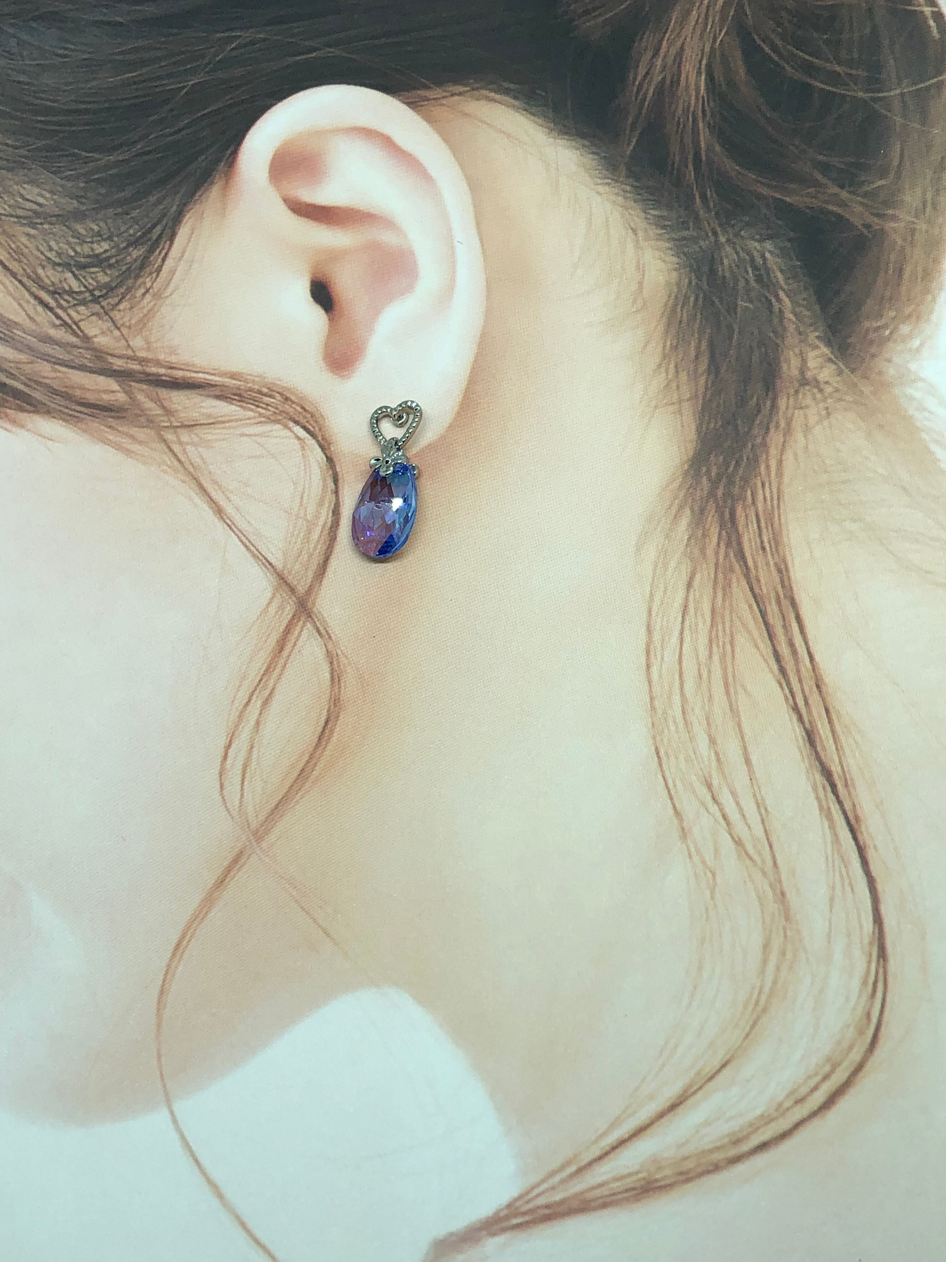 やや大きめな雫型のスワロフスキーですが、シンプルにすると、大きさも気にならない、キラキラと輝くのが素敵です。