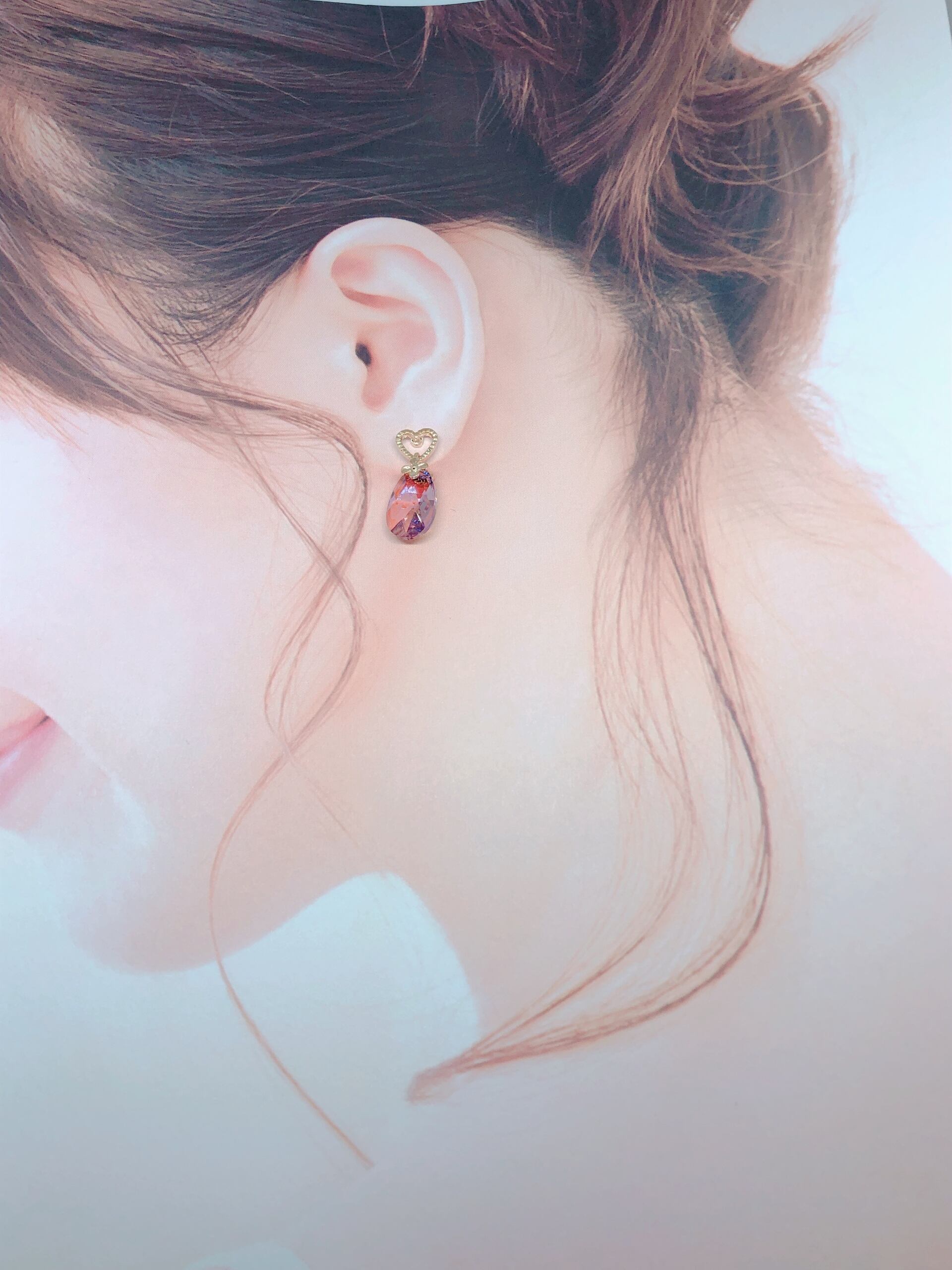 また、こちらのピアスは ピアス金具がハートのデザインになっているので、イヤリング、ノンホールピアスに変更する際は 金具がハート型にならないことを、ご了承願います。